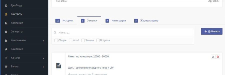 Пример заметок в CRM MautiBox для организации sales development representative (SDR):